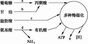 解析:肌糖元不能再进行分解形成葡萄糖补充进入血液;图示d过程表示的是脱氨基作用;图中的[H]可来自于葡萄糖的分解、丙酮酸的分解等多种生理生化反应。