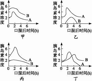 (2)图5-5-9甲-丁四种曲线图中能正确反映两人血液中胰岛素浓度变化的是_______。