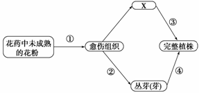 (1)图中①表示的是该花粉培养过程中的__________过程,②表示的是________过程,X代表的是________,③表示的是________过程,④表示的是诱导________过程。
