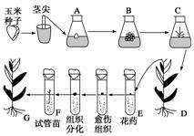 (1)取玉米幼苗的茎尖进行 ,如图A →C,发育成植株D,取D的花药进行离体培养成幼苗,属于________育种,如图E→F,经秋水仙素处理后发育成植株G;从生殖方式上分析,A→D属于________生殖;从细胞分裂方式上分析,E→F过程中进行了________分裂。