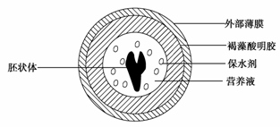7.制造人工种子的原理是在组织培养得到的“胚状体”的最外面用一层有机膜包裹,并在薄膜以内放入一些营养物质,这层膜和这些营养物质分别具有种皮和胚乳的功能(如图所示)。在制造过程中还可以加入某些农药、菌肥等。