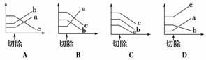 7.给正常小狗实施垂体切除手术后,短期内小狗血液中的三种激素--促甲状腺激素释放激素(a)、促甲状腺激素(b)、甲状腺激素(c)的含量变化正确的是(横轴为时间,纵轴为激素含量)( )