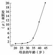 5.21三体综合征患儿的发病率与母亲年龄的关系如下图所示,预防该遗传病的主要措施是( )