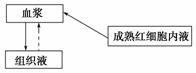 (6)尝试构建人体肝脏内血浆、组织液、成熟红细胞内液间O2、CO2扩散的模型(①在图形框间用实线箭头表示O2,用虚线箭头表示CO2。②不考虑CO2进入成熟红细胞内液。)