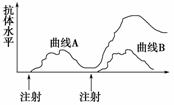 7.先后将抗原A和抗原A、B注射到小鼠体内,得到的抗体含量曲线如图所示。该曲线图表明( )