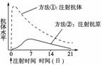 10.(2010·湖北部分重点中学联考)下图中的曲线显示了两种使人体获得免疫力的方法。据此判断下列说法正确的是( )