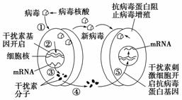 11. 如图表示病毒进入人体后,机体产生干扰素的过程及干扰素的作用机理,据图分析,下列叙述不正确的是( )