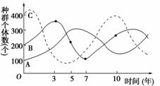 解析:题干获取的信息有:①生态系统中三个不同种群的生长繁衍情况,②从曲线可知三个种群的生物的捕食关系。解题时,首先明确生态系统的概念,分析曲线,明确三个不同种群生物的关系,及在生态系统中的成分,再结合生态系统各功能逐项解答。