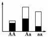 某种群中AA、Aa、aa的基因型频率如右图,其中阴影部分表示繁殖成功率低的个体。则该种群经选择之后,下一代中三种基因型频率的结果最可能是