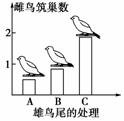 14.(2009年山东威海三模)科学家观察某种鸟的种群变化情况时发现,在繁殖季节有的雄鸟能够吸引6只雌鸟来到它的领土筑巢,有的雄鸟却“魅力不足”,其领地中鸟巢的数量很少甚至没有。经过一段时间的观察,研究者认为雄鸟能否吸引雌鸟到它的领土筑巢,与雄鸟尾羽的长短有关。为了验证这一观点,研究人员做了一个有趣的实验,实验结果如下图所示,请据图回答: