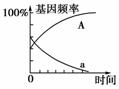 11.(2010年海淀模拟)在一个种群中,开始时A基因频率为50%,a基因频率为50%。三种基因型的比例分别是:AA为25%、Aa为50%、aa为25%,但基因型为aa的个体其生存能力和竞争能力明显低于另两种基因型的个体。那么经过了若干代的自然选择后,你认为下列哪种变化是符合实际情况的