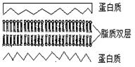 (3) 1959年,罗伯特森利用高锰酸钾固定细胞,在电子显微镜下看到细胞膜呈“暗-亮-暗”三条带,因此,他大胆提出了所有生物膜都是由蛋白质-脂质-蛋白质三层结构构成(模型如右图)。但这种静态模型不能很好地解释一些生物现象,如细胞的生长、变形虫的变形运动、水溶性物质如何透过疏水性的脂质分子层等。事实上蛋白质分子在细胞膜中的分布情况是