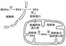 解析:本题主要考查基因的表达,意在考查考生对转录和翻译过程的理解。(1)图中①为转录过程,需要细胞质为其提供能量、酶和原料。(2)由图可知,除细胞质基质中含核糖体外,线粒体中也含有核糖体。(3)分析题意,线粒体中RNA聚合酶均保持很高活性,可见不是通过线粒体中的过程③、④合成的,故应是由细胞核中基因指导合成的。(4)细胞质基质中RNA含量显著减少,说明