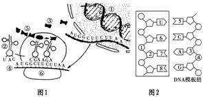 (2)图1中以④为模板合成⑤物质的过程称为________,进行的场所是[ ]________,所需要的原料是________。