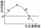解析:本题测试的知识点是生长素作用的两重性。涉及的知识点有顶端优势、生长素的运输、生长素的作用及其特点等,同时考查考生对所学知识融会贯通、综合运用的能力。解题的切入点是顶芽生长素浓度小于侧芽生长素浓度,而顶芽优先生长、侧芽生长受抑制。该知识点是植物激素调节的重难点,且与生产实践联系密切,是高考的重点与热点。因为顶芽产生的生长素源源不断地向侧芽运输,导致顶芽生长素浓度小于侧芽生长素浓度,从而使顶芽能优先生长而侧芽生长受抑制。所以,如果顶芽的生长素浓度在a-b之间,侧芽的浓度一定大于d(抑制生长);a-b与c-a浓度不同,但对应点浓度促进生长的速度是相同的;0-b与c-d浓度不同,促进生长的速度有的相同,有的不同。