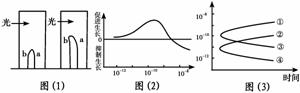 解析:从图(1)看出a、b两点都在生长,故生长素浓度都在促进生长的范围内,但由于单侧光的影响,使生长素在背光一侧分布较多,这样生长素浓度a侧大于b侧。由图(2)可知胚芽鞘的最适浓度范围为10-10 mol/L,所以图(3)中,a的浓度应为②,b的浓度应为④,这样才能促进a、b两点都生长,且a侧比b侧生长快。