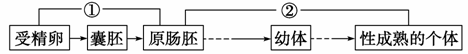 A.图中①过程表示胚胎发育,②过程表示胚后发育