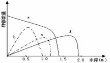 5、右图显示在一池溏内四种绿藻(a、b、c和d)在不同水深的分布情况。其中最能适应弱光环境的绿藻是( )