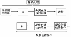 (1)将实验流程补充完整:A为________________,B为________________。凝胶色谱法的基本原理是根据________________而达到蛋白质分离的有效方法。