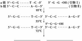 解析:(1)DNA聚合酶不能从头开始合成DNA,只能从3′端延伸DNA链,所以引物就提供了3′端,子链延伸方向为5′→3′,引物Ⅰ与b链部分碱基互补,引物Ⅱ则与a链部分碱基互补,且连接到a链的3′端,故引物Ⅱ的结构为5′-G-A-OH,HO-A-G-5′。复性结果为:3′-C-C……A-G-5′