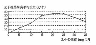 16.(09南昌高三测试) 进行研究性学习的同学对某品种蕃茄的花进行人工去雄后,用不同浓度的生长素类似物2,4-D涂抹子房,得到的无子番茄果实平均重量见下图,据