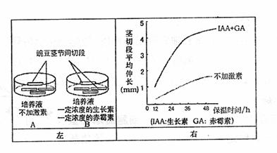 ②将两组豌豆茎切段分别放入两个标号为A、B的培养皿中(培养液成分见下图),在同样的条件下培养;