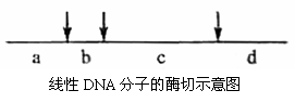 (08理综Ⅰ)已知某种限制性内切酶在一线性DNA分子上有3个酶切位点,如图中箭头所指,如果该线性DNA分子在3个酶切位点上都被该酶切断,则会产生a、b、c、d四种不同长度的DNA片段。现在多个上述线性DNA分子,若在每个DNA分子上至少有1个酶切位点被该酶切断,则从理论上讲,经该酶切后,这些线性DNA分子最多能产生长度不同的DNA片段种类数是 ( )