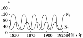 14. (09黄冈高三模拟)寒带针叶林中两个动物种群(N1、N2)的数量变化如图所示,据图判断这两个种群的关系是 ( )