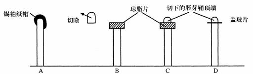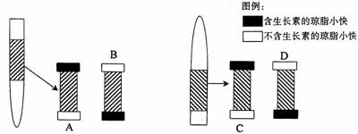 (1)过一段时间后,测定原先不含有生长素的琼脂小块中是否含有生长素,其实验结果可能是从琼脂小块中________生长素;B琼脂小块中_______生长素;C琼脂小块中________生长素;D琼脂小块中_________生长素。