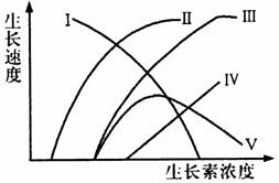 27.(1999年上海高考试题)图6-13中曲线见表示茎伸长生长与植物生长素浓度的关系。如果将同样浓度范围的生长素施用于测芽,则能代表它生长状况的曲线是( )