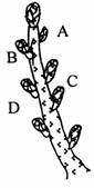 5.右图示白杨树的主于上端,A、B、C、D分别为其生长正常的侧芽。请分析: