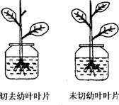 (10分)为验证“幼嫩叶片可产生生长素,生长素可阻止叶柄脱落”的结论。某同学设计了一个实验方案。他的实验步骤为:取两株生长良好的植物,均去掉顶芽,其中第一株再去掉幼叶的叶片,另一株不做处理(如右图所示);培养并观察比较幼叶叶柄的脱落情况。
