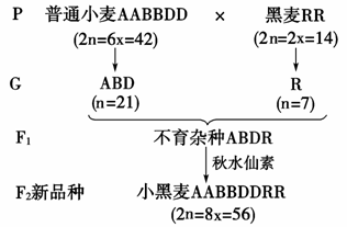 答案:(1)四个染色体组 (2)F1产生配子时,减数分裂过程中联会紊乱,染色体不能两两配对 (3)用秋水仙素处理萌发的种子或幼苗 (4)耐土地贫瘠、耐寒冷、面粉白、蛋白质含量高