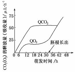 10.(2011·黄冈中学月考)某研究性学习小组研究西瓜种子萌发时的代谢,得到曲线图(QCO2表示单位时间CO2释放量,QO2表示单位时间O2吸收量)。下列相关叙述中,不正确的是( )