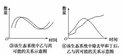 解析:结合表中能量的数值及能量传递效率(10%~20%),可以发现:戊为生产者,乙与丙是初级消费者,甲是次级消费者,丁是三级消费者。由此可以判断出图①和图③是错误的。各生物的营养关系可以用能量金字塔②来表示,乙与丙是竞争关系,可用图④表示二者的数量变化。