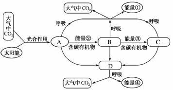 6.(2010·汕头调研)如图表示生物圈中碳循环的部分示意图。A、B、C、D构成生物群落,箭头①~⑨表示循环过程。下列有关说法正确的是( )
