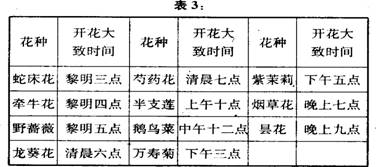 2.18世纪,英国著名的植物学家林奈对植物开花时间作了很多观察和研究,并在自己的花园里培植了一座有趣的“花钟”,如表3所示。决定表中各种花按时开放的原因是其 ( )
