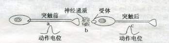 4.(2011江西九校联考)如图表示一个神经元在一次兴奋后,将兴奋传递给另一个神经元的过程。下列相关叙述正确的是 ( )