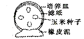 ② 材料处理的可对照性,玉米粒分别位于上下左右四个位置,使其胚根 朝向培养皿中央。