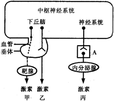 (4)在寒冷的环境中,能通过丙方式促进甲状腺分泌甲状腺激素,其反射弧是:______________→传入神经→ →传出神经→甲状腺