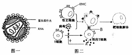 (1)据研究表明,甲型H1N1流感病毒(如图一)是一种单链RNA病毒,其基因组RNA自身即可发挥翻译模板的作用。其翻译合成蛋白质的场所是 。