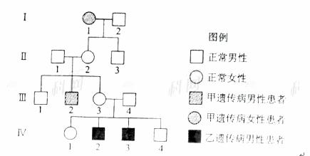 (4) 若IV-1与一个正常男性结婚,则他们生一个患乙遗传病男孩的概率是______。
