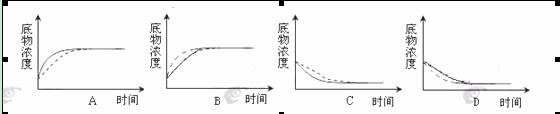 6.将2 mL体积分数为3%的过氧化氢溶液分别加入a、b两支试管中,再在a试管中加入2滴新鲜的肝脏研磨液,b试管中加入4滴新鲜的肝脏研磨液。下列四幅图表示两试管中底物浓度随时间的变化曲线,实线表示a试管,虚线表示b试管,其中表示正确的是 ( )