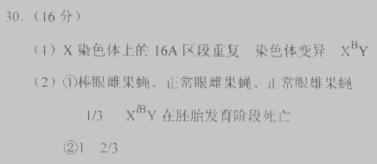 (2)研究人员构建了一个棒眼雌果蝇品系