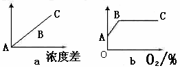 (1)心肌细胞吸收 O2、 K+的运输方式依次是图_______、_______(填序号)。 图 b 出现 BC 段的主要原因是______________。