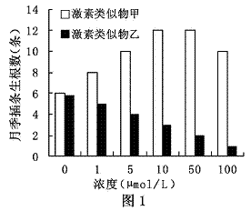 30.(2011年江苏卷)(7分)人工合成的植物激素类似物常用于生产实践。某课题组研究了激素类似物甲和激素类似物乙对微型月季生根和侧芽生长的影响,请回答下列问题: