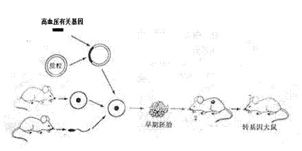 人类疾病的转基因动物模型常用于致病机理的探讨及治疗药物的筛选。利用正常大鼠制备遗传性高血压转基因模型大鼠的流程如图所示。