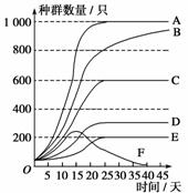 组2:甲种与乙种于同一容器中饲养,乙种数量变化如曲线F所示。