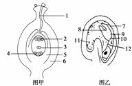 (1)图乙的胚是由图甲的[ ]________发育而来,其细胞增殖的方式是________。