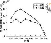 2.右图是夏季晴朗的白天,玉米和花生净光合速率(时间单位、单位叶面积吸收